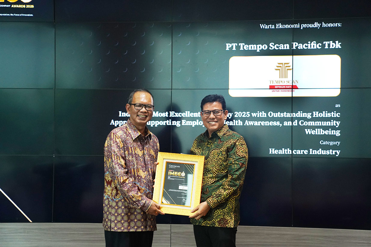 01/10/2025PT Tempo Scan Pacific Tbk meraih penghargaan Indonesia Most Excellent Company (IMECO) Awards 2025 dari Warta Ekonomi untuk kategori Outstanding Holistic Approach Supporting Employees, Health Awareness, and Community Wellbeing. Penghargaan ini diberikan sebagai bentuk apresiasi atas komitmen Tempo Scan dalam menghadirkan inovasi berkelanjutan, menciptakan lingkungan kerja yang sehat dan inklusif, serta kontribusi nyata bagi masyarakat.